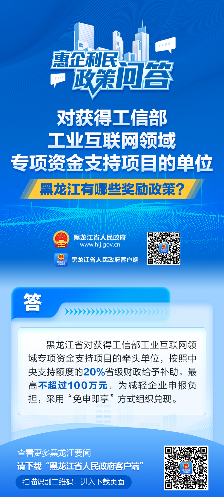 【“营”在龙江】对获得工信部工业互联网领域专项资金支持项目的单位,黑龙江有哪些奖励政策?
