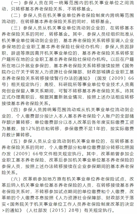 【人社动态】机关事业单位养老保险关系转移接续政策解读